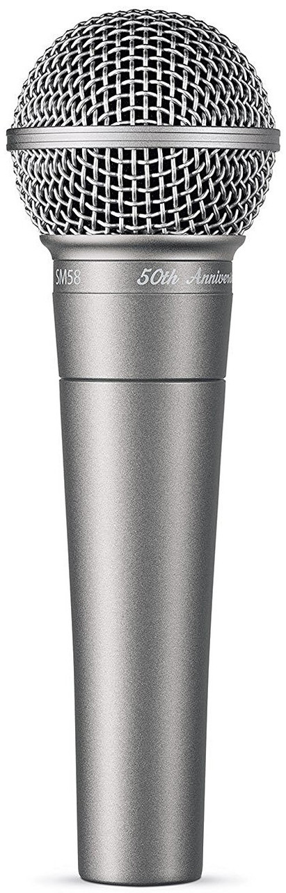 Кардиоидный микрофон в лимитированном исполнении, приуроченном к 50-й годовщине модели, обеспечивает тёплое и чистое воспроизведение вокала и имеет уникальную серебристую отделку, выраженный спад частотной характеристики в области средних и низких частот, систему пневматической амортизации и встроенный сферический поп-фильтр. Легендарный SM58 создан для того, чтобы подчеркнуть теплоту и разборчивость основного и бэк-вокала; это отраслевой стандарт вокального микрофона для живых выступлений, известный своей прочностью и надёжностью в гастрольных турах.